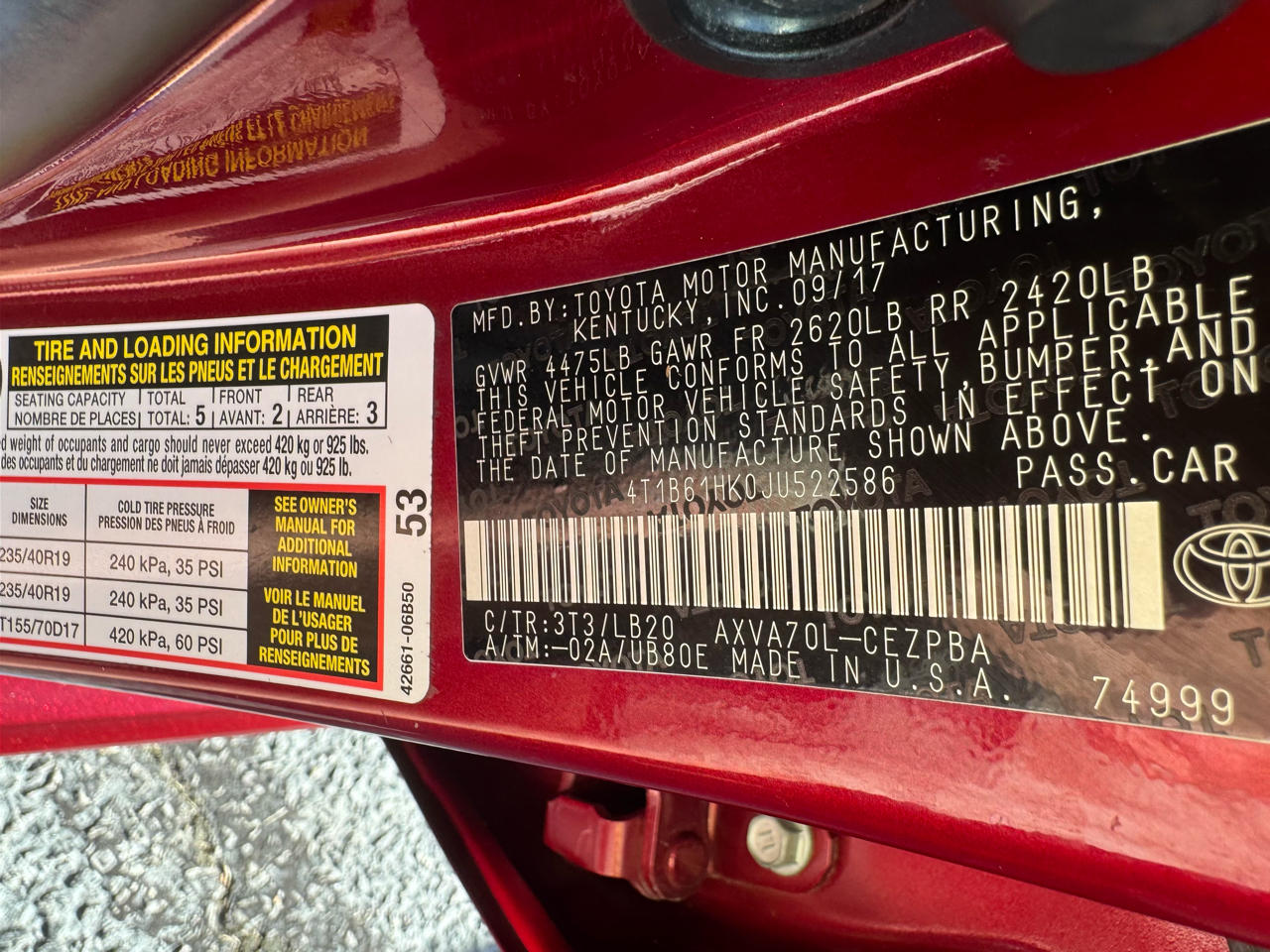 4T1B61HK0JU522586